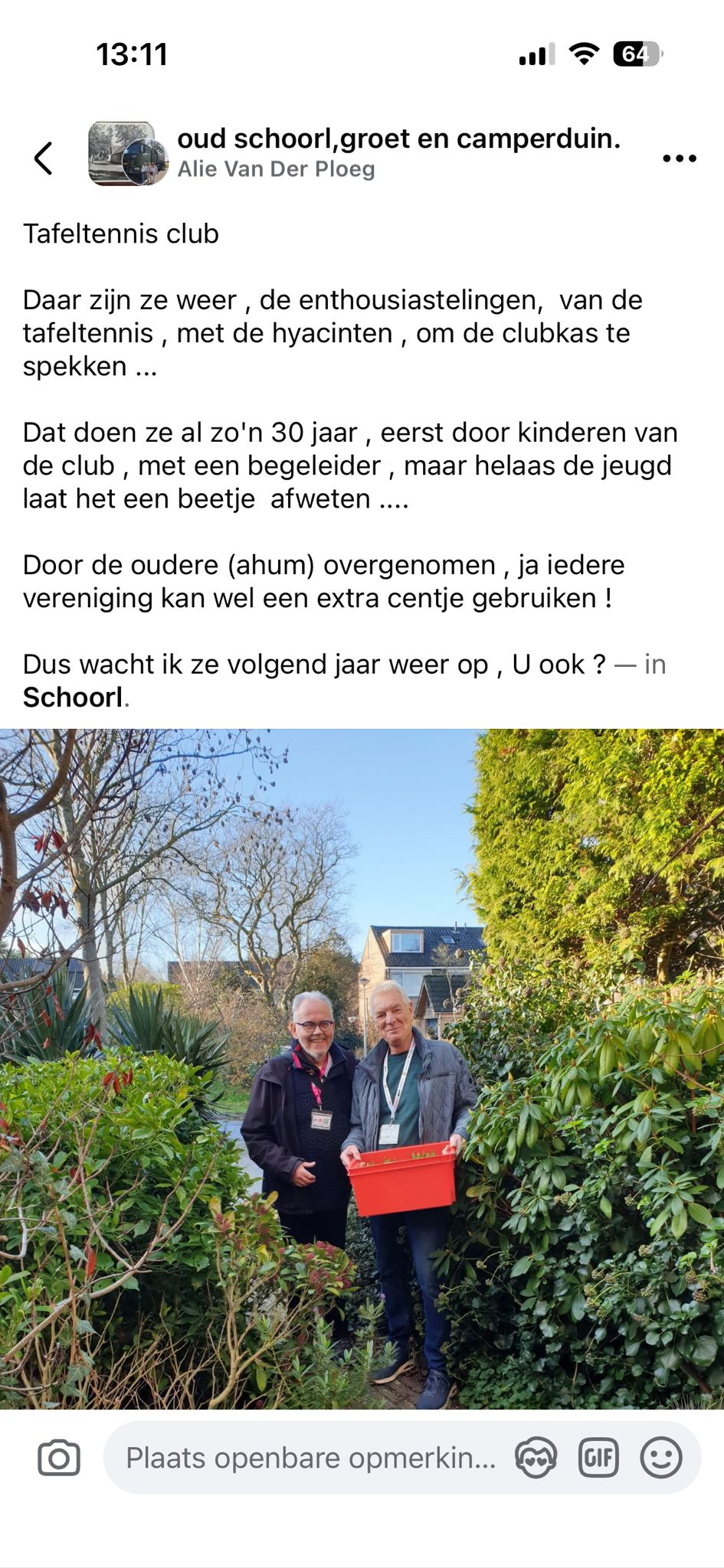 Hoewel er geen formeel verslag vanuit het bestuur is, kwam er wél mooie feedback binnen. Marc van Heijster deelde een Facebookbericht dat de sfeer goed samenvat: enthousiaste verkopers, trouwe buurtbewoners en een actie die nog altijd leeft. Angelina stuurde een foto van een zichtbaar tevreden klant die al vooruitkijkt naar het voorjaar. Ewald deelde een inkijkje achter de schermen, waar samen tellen, koffie drinken en bijpraten minstens zo belangrijk zijn als de opbrengst zelf.